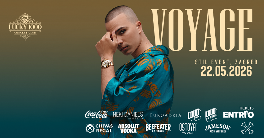 VOYAGE – LIVE (STIL EVENT/ZAGREB) LUCKY 1000 KONCERT CLUB PREDSTAVLJA:VOYAGE, 22.05.2026. u Stil Event dvorani (Američki paviljon 13), Zagreb / kupi ulaznice! Spremite se za večer koju nećete zaboraviti! 22. svibnja 2026. u Stil Event dvorani (Američki paviljon) na Zagrebačkom Velesajmu, VOYAGE uz neponovljivi live show, vrhunsku atmosferu i goste iznenađenja! Što vas očekuje? • […]